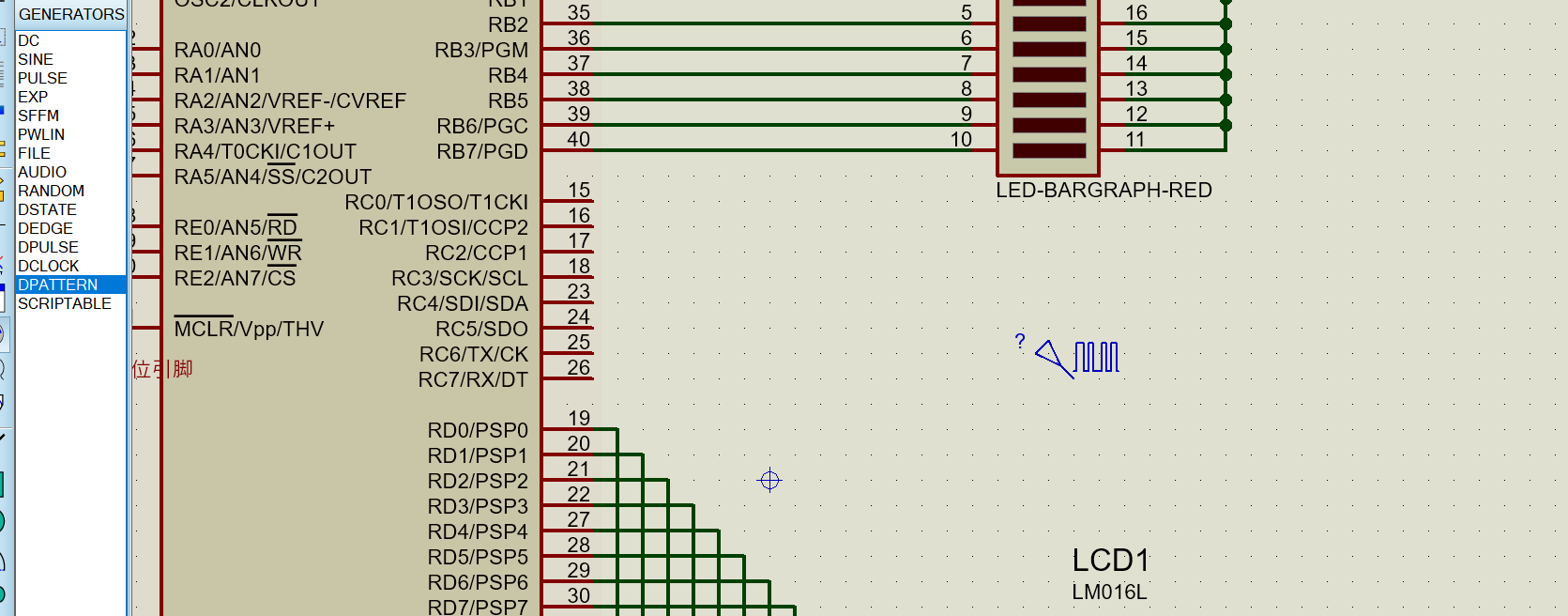 如图所示,因为RC2输出的红外基带信号带有毛刺,所以这里改为RC7引脚输出基带信号,这样,就能组成一个完整的红外发送-接收系统,运行仿真,此时红外接收端的LED同与发送端PORTB的逻辑