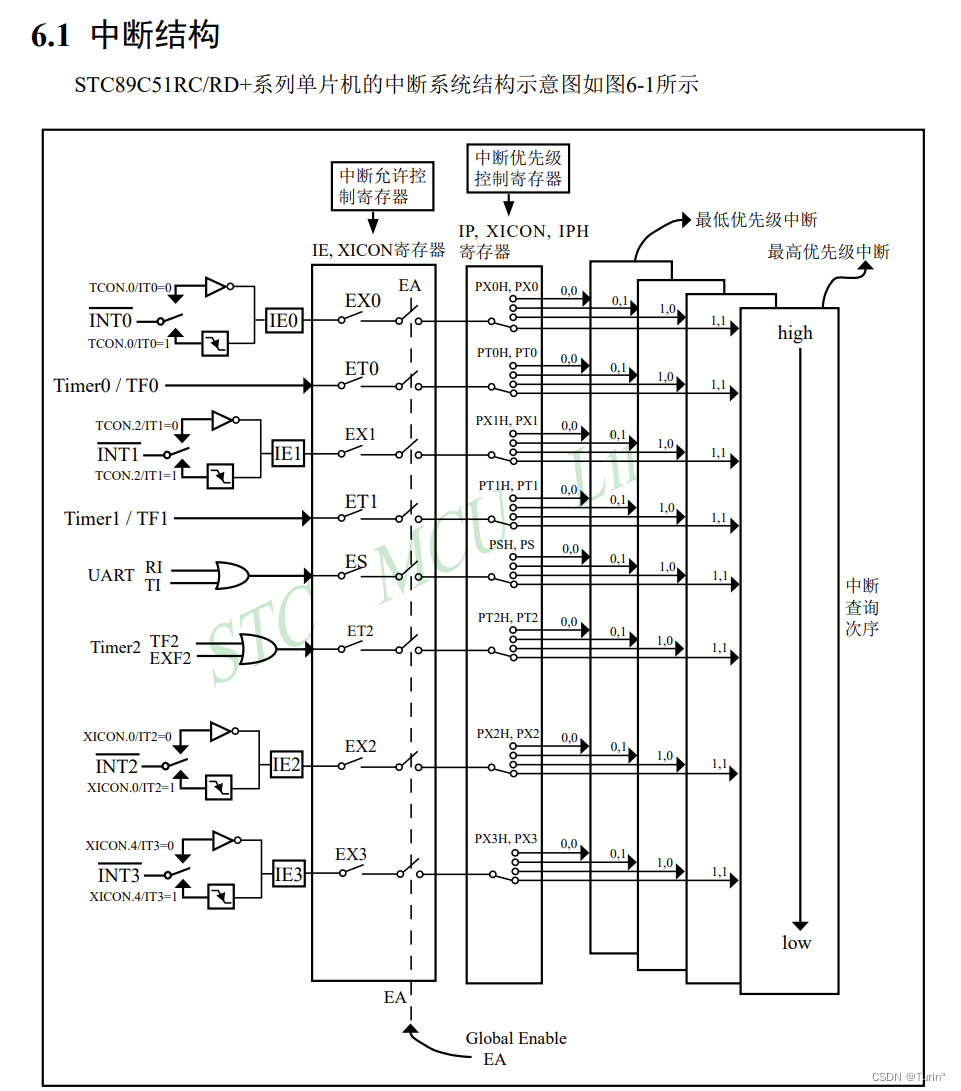- 寄存器解释,中断系统的详细原理见数据手册(养成良好的阅读素养)