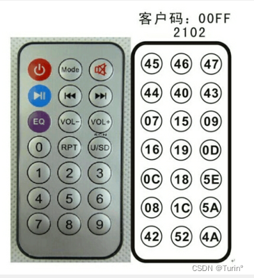 这里,我们定义地址码为Address,命令码为Command, 完整的数据码为DATA,如果我们按下0,那么发送的Address=0x00; Command =0x16; 那么DATA一共包含0X00,0XFF,0X16,~0X16四个字节的先后数据。