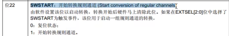 实际上是获取CR2的SWSTART这一位,但是SWSTART在开始ADC转换后直接清除,所以并不能通过这个函数获得是否开始转换的信息