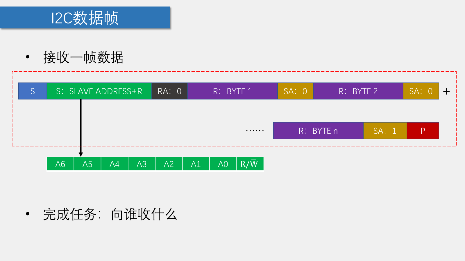 while(num--)//循环接收数据字节,存入EEPROM_String指向的地址 { *EEPROM_String++=IIC_RecByte();//指针移位读取数据到对应的地址中 if(num)//判断是否读取完数据 { IIC_SendAck(0);//发送应答0,表示继续接收数据 } else { IIC_SendAck(1);//发送应答1,表示停止接收数据 } } IIC_Stop();//终止IIC通信} 【通信协议】01 - IIC协议