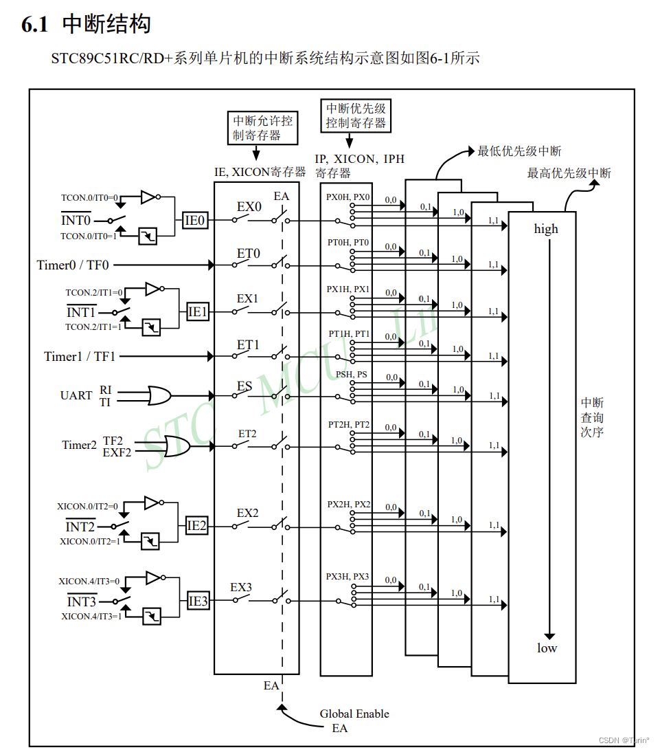 - 寄存器解释,中断系统的详细原理见数据手册(养成良好的阅读素养)