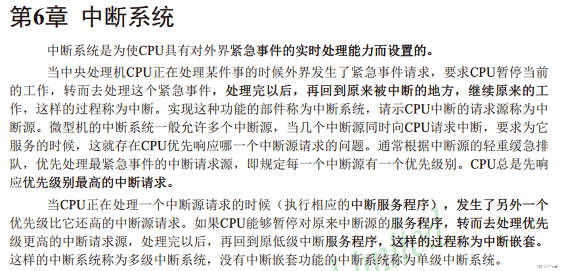 - 中断系统即对紧急事件的实时处理
