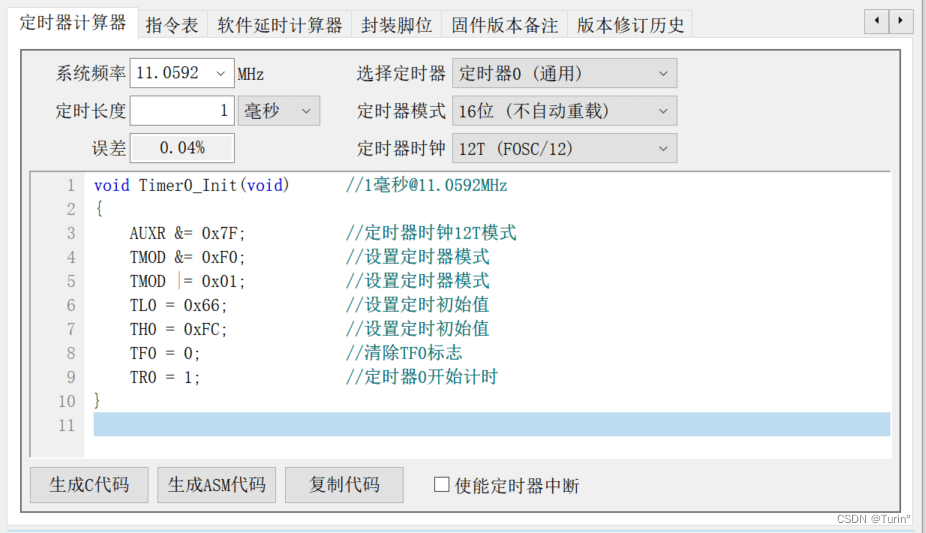 void Timer0_Init(){ TMOD=0x01; //0000 0001 TF=0;}定时器的快捷配置