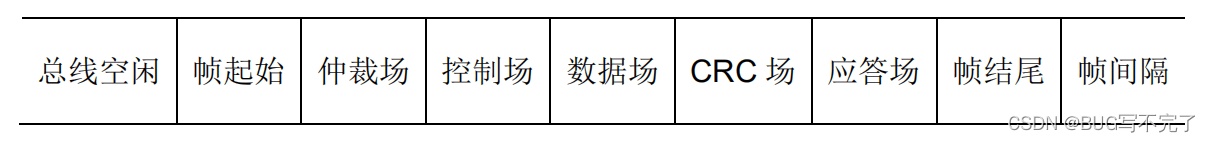 CAN总线数据帧的帧结构: