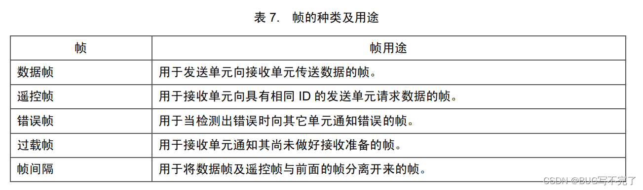 其中数据帧和遥控帧有标准格式和扩展格式两种格式。