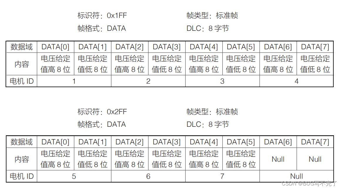 一个数据帧只能给四个电机发送数据,