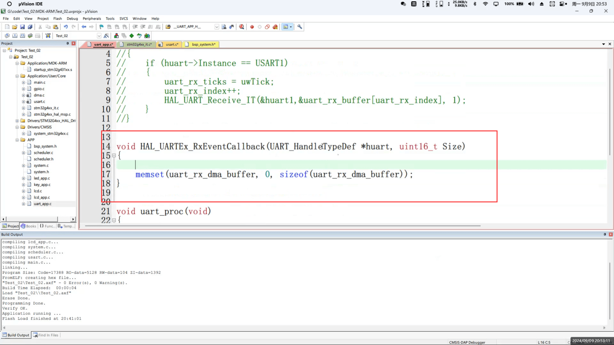 int fputc(int ch, FILE * str){ HAL_UART_Transmit(&huart1,(uint8_t *)&ch,1,10); return ch;}2.2 app_uart.c 变量定义