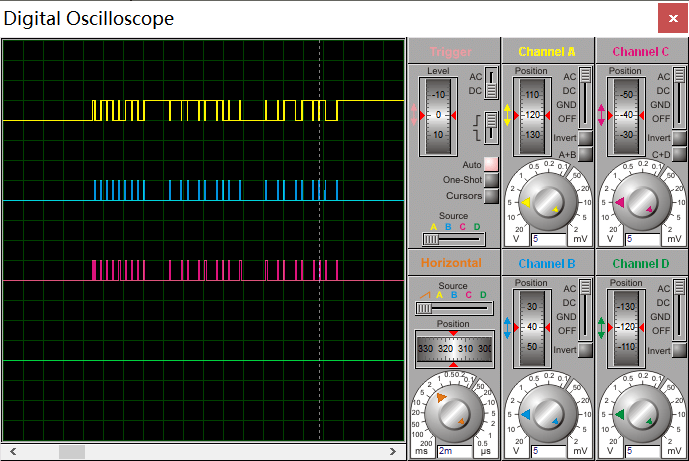char B;void interrupt ccp1_int(){ CCP1IF = 0; PORTD^=0xFF; /* if(CCP1M03.仿真软件测量接收信号时,选定捕捉每个bit数据的范围