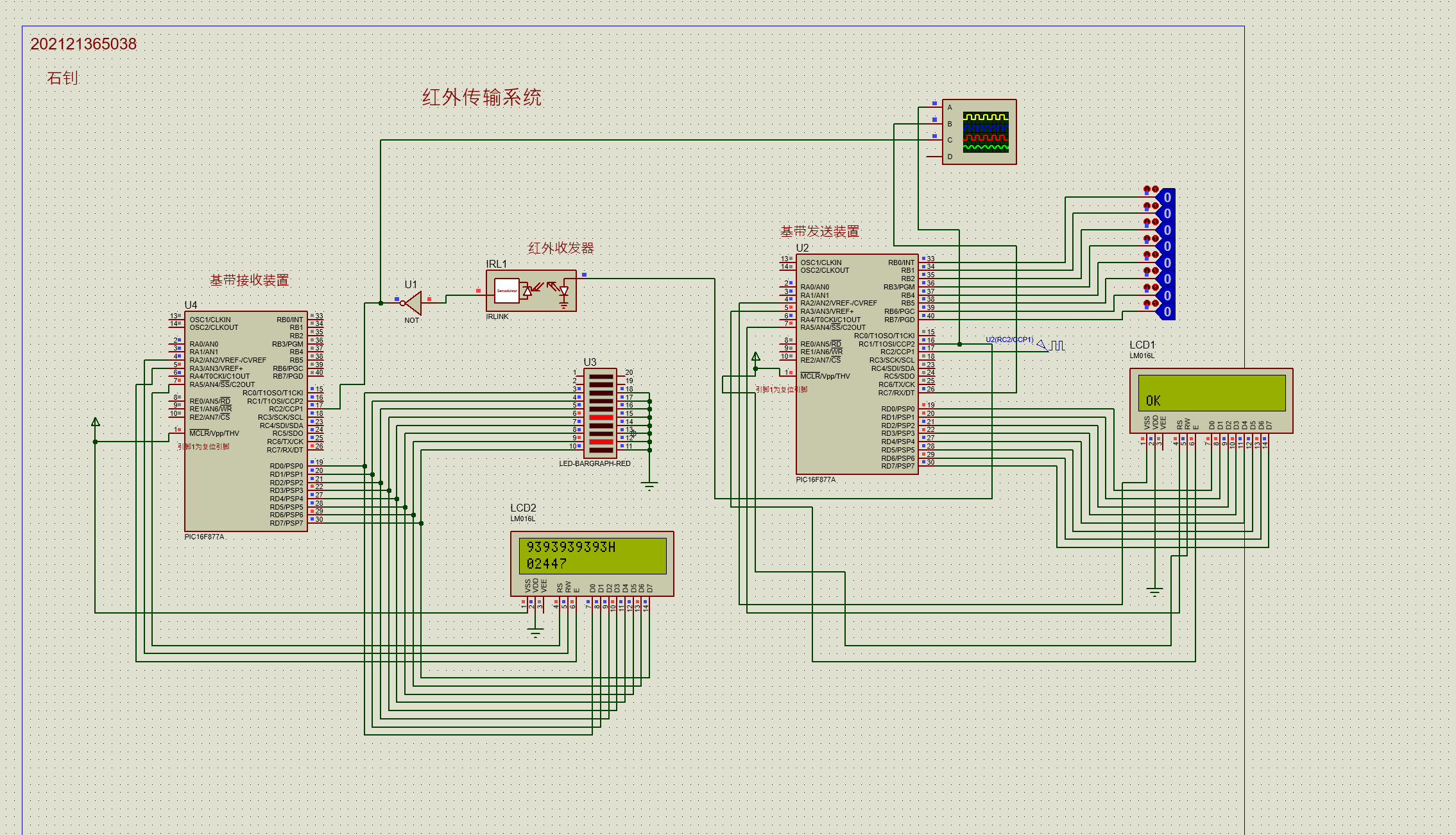 a=!a; if(a三、将基带电路与调制电路配合,组成简易的红外通信系统
