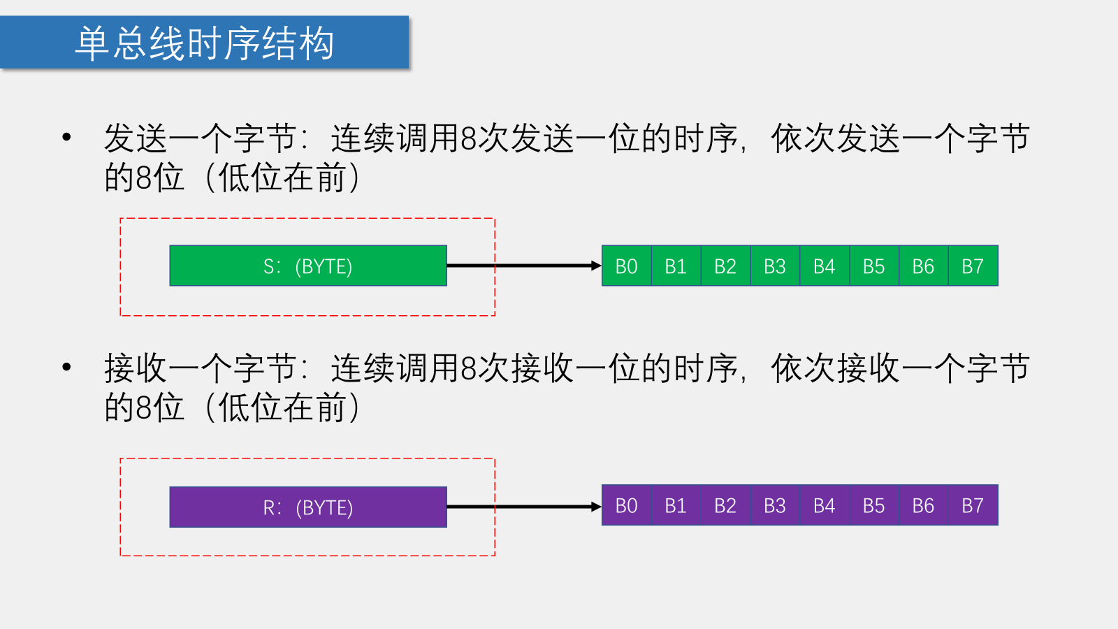 init_ds18b20();//ds18b20初始化时序 Write_DS18B20(0xcc);//ds18b20跳过rom指令 Write_DS18B20(0xbe);//ds18b20开始温度读取 low=Read_DS18B20(); high=Read_DS18B20(); return((high << 8 )| low) /16.0;} 【通信协议】02 - OneWire协议